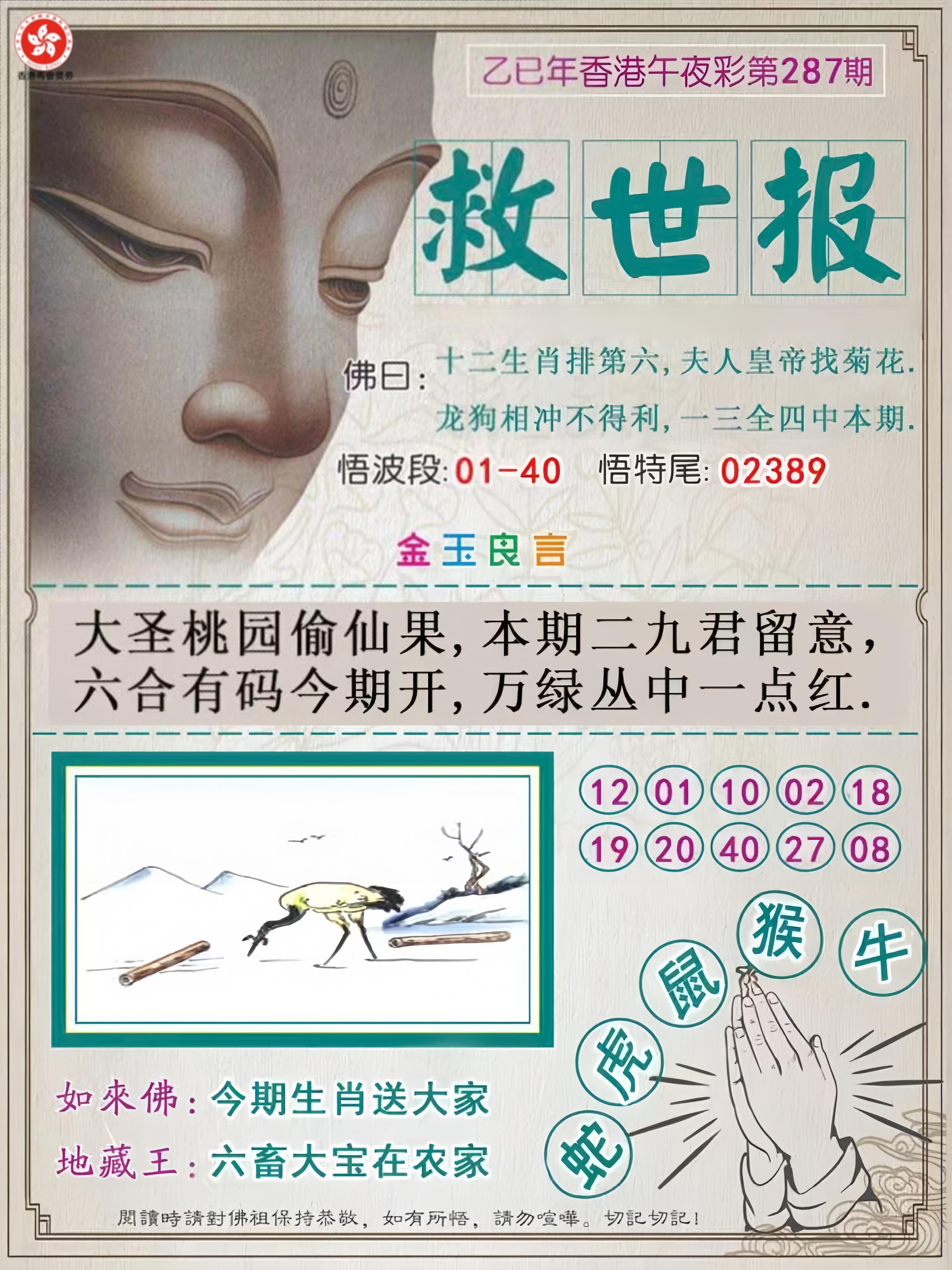 287期;【龙虎鸡蛇羊狗猴牛马】开:兔03错 |
