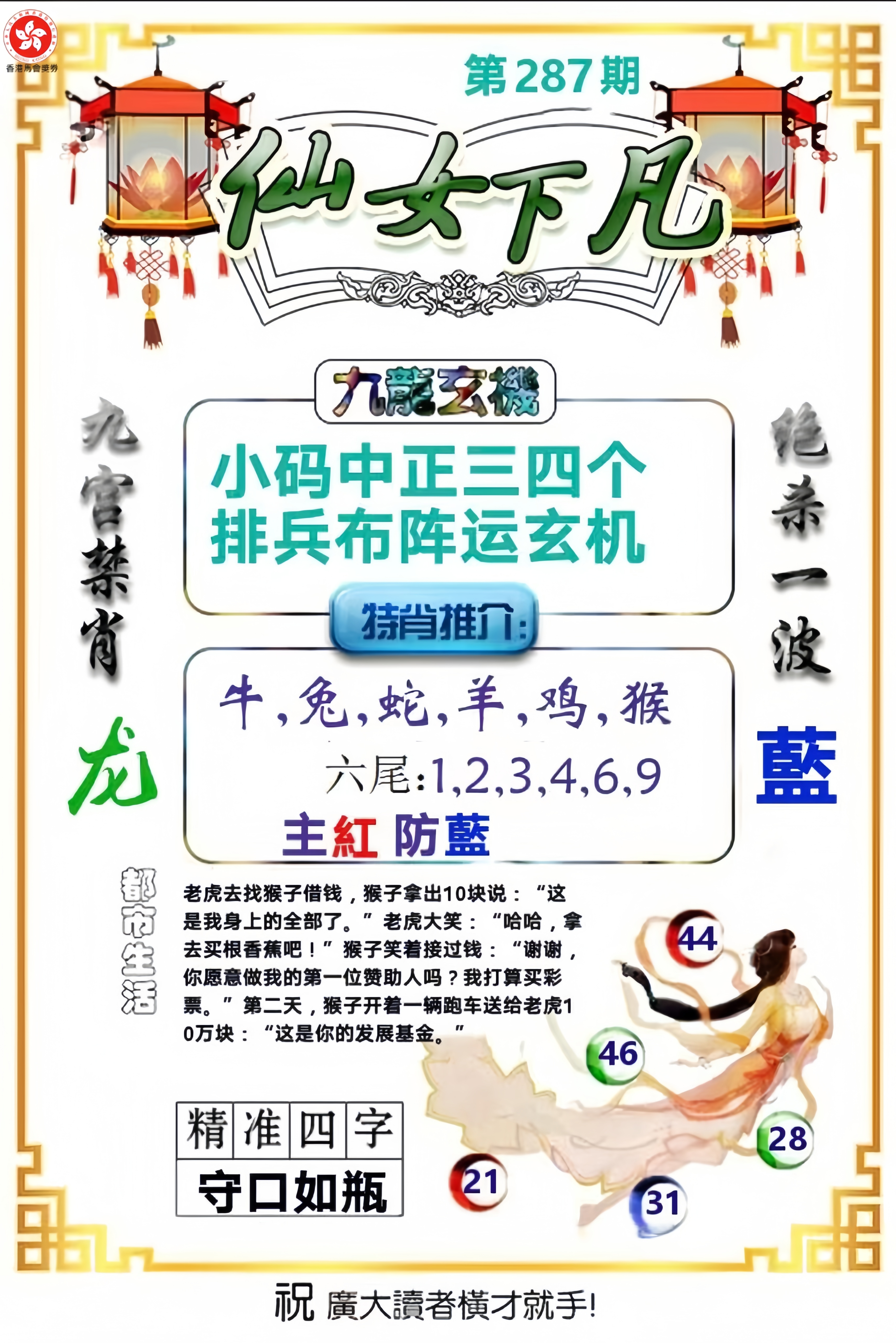 287期:⑤肖 | 羊虎龙鸡猴 | 开:兔03 |